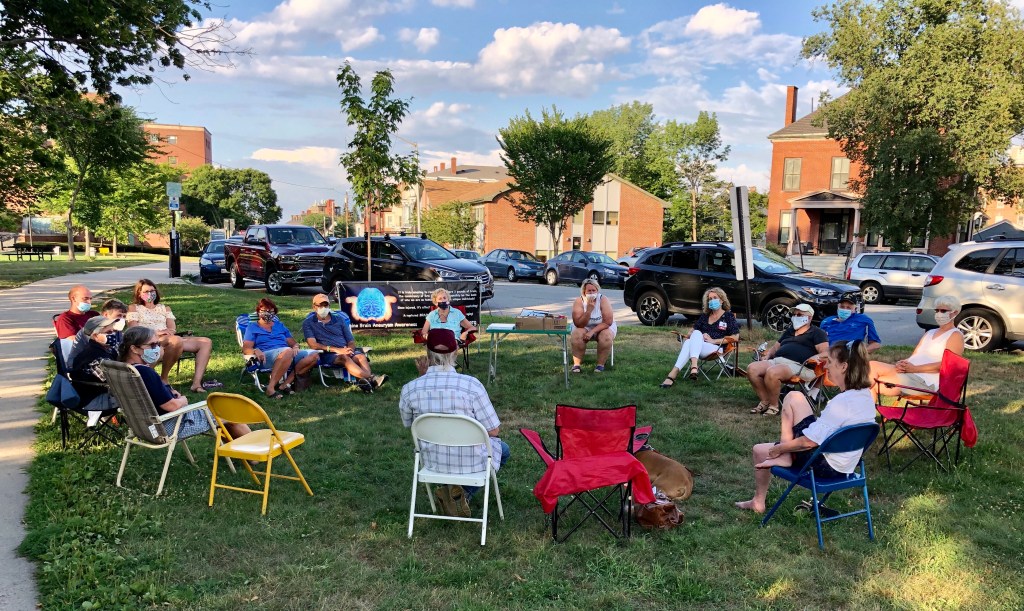 Our group held its second brain aneurysm support meeting tonight since the start of the pandemic. Held outside, with proper spacing, and all wearing masks, we enjoyed a stunning, summer evening in Portland.